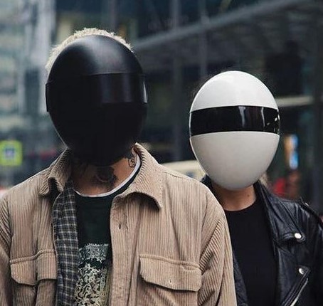«una maschera facciale integrale e modulare chiamata “blanc”. Concepita come maschera protettiva, accessorio per lo stile di vita, unità di igiene digitale (?), gadget tecnologico e custode della privacy (!?), ‘blanc’ copre gli occhi, il naso e la bocca degli utenti (mica persone o esseri umani, non scherziamo!), mentre i filtri HEPA approvati dalla FDA proteggono i portatori dal 99% delle particelle, compresa la polvere, nebbie e aerosol. Questi filtri si incorporano perfettamente alla maschera insieme ad una scala di colori visiva, interna al visore, che indica quando è il momento di cambiarli.»